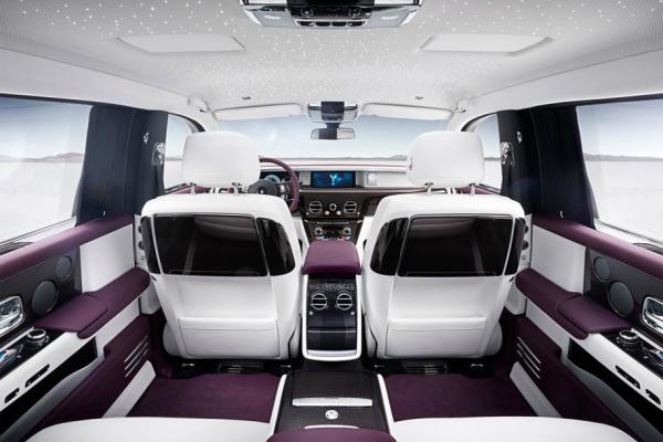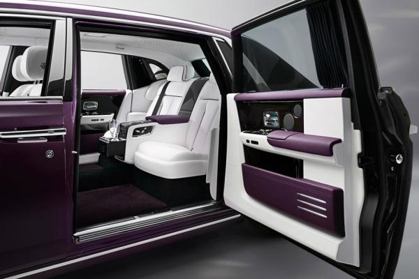 Задние двери Phantom, как и у предшественника, открываются против движения. Салон встречает еще более роскошной отделкой с кожей, алюминием и натуральным деревом. От посторонних уличных звуков избавляют двухслойные стекла и изоляционные материалы, общая масса которых превысила 130 килограммов. Этой же цели служат покрышки, заполненные изнутри специальной пеной.