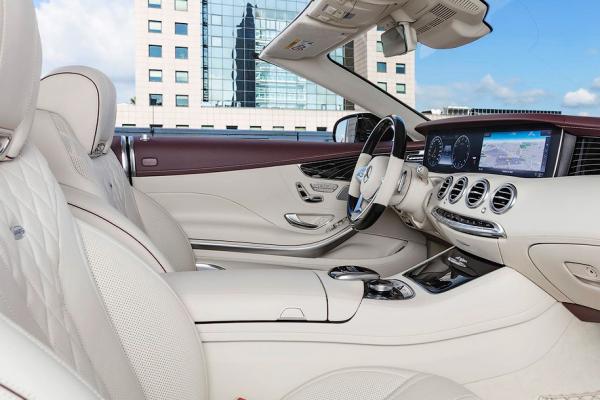 Интерьер изменился по образу седана S-Class, который обновился несколькими месяцами ранее. Здесь стоит новая баранка с "тачпадами" на спицах. Приборная панель окончательно слилась с центральной консолью в единый блок. Мультимедиа теперь распознает около 450 голосовых команд, включая настройки климата и активацию подогрева кресел.