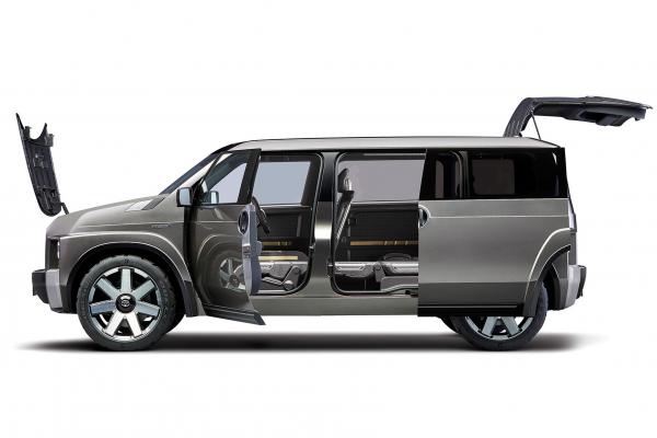 Капот, крыша и передние крылья концепта покрыты специальным составом, защищающим краску от царапин. Салон тоже сделан с оглядкой на практичность. Раздельные задние кресла складываются в ровный пол, причем спинки усилены так, чтобы образовать прочную площадку для тяжелых грузов. Боковые двери сдвигаются, облегчая доступ на галерку. Перед водителем – цифровая приборная панель, растянутая на всю ширину торпедо.