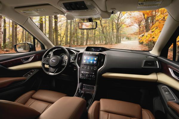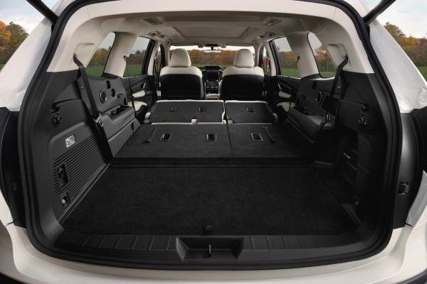Интерьер уже в стандарте позволяет разместить до восьми седоков, включая водителя. За доплату средний ряд получит два отдельных кресла. Климат-контроль регулирует "погоду" в трех зонах – причем, доступен он уже в базе. В числе опций - мультимедиа с 8-дюймовым экраном, аудиосистема Harman/Kardon, вентиляция передних сидений, панорамная крыша, система кругового обзора и полностью светодиодная оптика. Салон топовых версий Subaru отделан кожей и деревом.