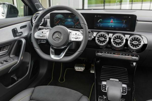 Интерьер перекроен полностью. По примеру других Mercedes здесь появилась цифровая приборка, слитая в единый блок с экраном мультимедиа. Однако в отличие от дорогих моделей, у A-Class экраны не спрятаны под козырек. Зато конструкция с двумя дисплеями войдет уже в базовую комплектацию. В стандарте они получат диагональ 7 дюймов, однако в топе вырастут до 10,25. Перемещаться по меню пользователь сможет, благодаря джойстику и тачпаду на центральном тоннеле.