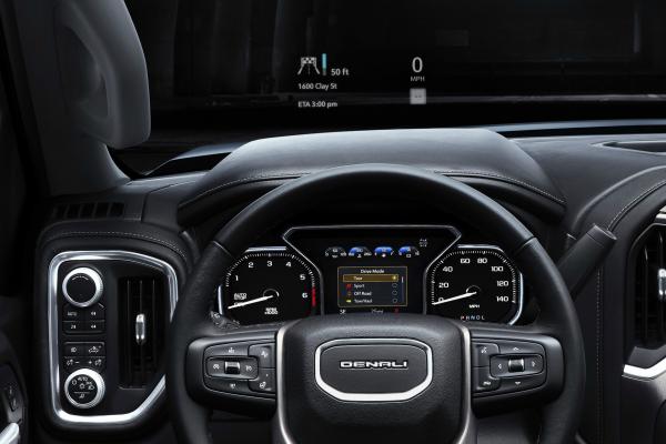 Оснащение GMC Sierra достойно премиальных авто. Особенно, если речь идет о дорогих версиях SLT и Denali. Здесь есть полный набор светодиодной оптики, адаптивная подвеска, кожаная отделка салона. Маневрировать на парковке помогают камеры кругового обзора, причем, картинка с кормы выводится на экран в салонном зеркале. В числе опций грузовичок впервые получил цветной проекционный дисплей.
