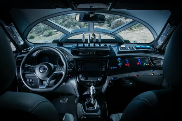 Салон Nissan превращен в кабину звездолета. К штатной "начинке" прибавлены различные рычаги и кнопки. Кроме того, интерьер обзавелся особой подсветкой и аудиосистемой с 18-дюймовым сабвуфером. На центральной консоли стоит новый рычаг коробки передач. Переднее остекление имитирует панорамное окно космолета.
