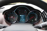 Передняя панель автомобиля снабжена большим сенсорным монитором и украшена Y-образной вставкой, определяющей геометрию расположения клавиш управления. Расположение приборов – спортивное, в нем читается намек на участие и победы Сhevrolet в гонках WTCC. Да и сама панель создает вокруг водителя и пассажира что-то вроде полукокпита.
