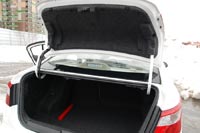 Интерьер оставил благоприятное впечатление. Пластик добротный, в основном мягкий. Посадка удобная, как спереди, так и сзади. Передняя панель современная, по центру размещена мультимедийная система с сенсорным экраном. А вот к оснащению автомобиля есть вопросы. Наверняка, тестовый автомобиль был в одной из самых богатых из возможных комплектаций (на момент проведения теста комплектации для российского рынка еще не были известны). Но даже здесь руль регулируется только но наклону, на машине с автоматической трансмиссией это не мешает, а с механикой могут быть проблемы. Климат-контроль однозонный. Задние кресла не оснащены никакими регулировками, хотя их конфигурация и угол наклона спинок подобраны оптимально. Багажник вместительный, под полом нашлось место для полноразмерного запасного колеса на литом диске. Плохо, что нет никаких органайзеров, сеток, крючков для крепления мелких предметов. Есть только сдвижная шторка и пара небольших боковых карманов. Еще один недостаток, задние спинки сидений очень толстые и при складывании они не образует горизонтальную поверхность.
