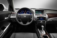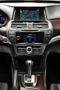 Для отделки интерьера теперь используются более качественные и приятные на ощупь материалы, но при этом передняя панель все равно осталась жесткой. Да и пластиковые вставки под дерево выглядят чужеродно. Что ж, ничего не поделаешь, Honda Crosstour изначально проектировался в расчете на американский рынок. А как мы знаем, для Америки сочетание яркого экстерьера и грубоватого интерьера в порядке вещей. Зато у Crosstour типично американские большие, мягкие передние кресла, очень удобные в дальней дороге. На заднем ряду тоже вполне комфортно. Багажник огромный по площади, но не очень вместительный из-за того, что его пол расположен высоко.