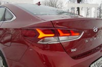 Дизайн Sonata не назовешь ультрасовременным, однако внешность машины отторжений не вызывает. Из ярких элементов можно выделить разве что светодиодную оптику как спереди так и сзади, причем она доступна уже в недорогих комплектациях. В ярких цветах автомобиль смотрится более выигрышно.