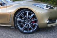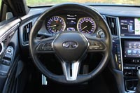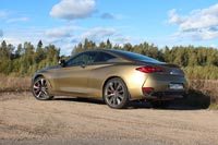 Полный привод у Infiniti – тема вполне привычная, именно версии со всеми ведущими колесами в России продавались лучше всего. Ну как лучше… процентов 95, если судить по тому, что можно встретить на дорогах. Здесь акцент понятно, на RWD, но в приводе передних колес находится электрогидравлическая муфта, способная перебрасывать вперед до 50% тяги. Упор на задний привод хорошо чувствуется на ходу, а передок ощутимо помогает в основном при резком старте. Хотя, несмотря на достойные характеристики разгона, пушечным его назвать здесь сложно. Он скорее плавный, ощущается немалый вес, хотя это совершенно не мешает Q60 набирать «сотню» за 5,1 сек. и легко и непринужденно разгоняться дальше, почти не снижая темпа.