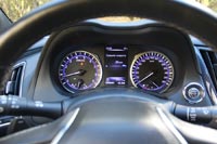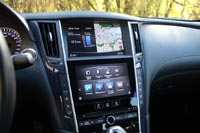 Салон узнаваем с первого взгляда. Да, тут появилось две сенсорные панели вместо одной, которые поменяли алгоритм, цветовую гамму и логику управления (наконец то), но интерьер не спутаешь ни с чем. Этот трапециевидный вырез под селектор АКПП, сам селектор, логически продолжающаяся трапеция на торпедо и трапециевидные же дефлекторы системы вентиляции. В Infiniti явно неравнодушны к сей геометрической фигуре. В принципе, это неплохо – создает фирменный стиль, а он молодой премиальной марке ох как нужен. Сиденья профилированные, довольно глубокие, но не тесные и вообще впереди абсолютно комфортно. Сзади кстати, тоже весьма неплохо, если вы не баскетболист. Места хватает, это вам не GTR или Carrera – парочка взрослых людей усядется без особых проблем. Если сможет туда пролезть. Впрочем, попытка – не пытка, желательно, правда, перед этим сделать несколько упражнений на растяжку, дабы чего не вывихнуть. Но для купе от Infiniti это тоже можно расценивать как часть фирменного стиля.