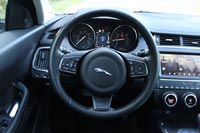 По настройкам подвески автомобиль больше напоминает спортивный хэтчбек нежели кроссовер. Jaguar E-Pace отлично управляется, но при этом подвеска жестковата даже на 18-дюймовых колесах. Но при этом речь о дискомфорте не идет, просто на сильно разбитой дороге приходится снижать скорость до разумных пределов. В целом автомобиль очень комфортный, шумоизоляция – на высоте, двигателя в салоне почти не слышно.