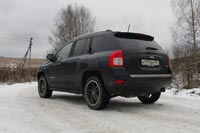 Начало тест-драйва прошло в пятничных московских пробках. Высокая посадка и большие боковые зеркала обеспечивают отличный обзор, проблем с перестроениями из ряда в ряд не возникало. Внутрисалонное зеркало очень сильно приближает объекты, находящиеся сзади, и частично перекрывается задними подголовниками, поэтому при езде практически не используется. Вариатор освобождает от необходимости постоянного переключения передач, но монотонный звук двигателя отчетливо прослушивается в салоне даже на низких оборотах. Комфортная и энергоемкая подвеска «Компаса» не пропускает в салон мелкие ямки и стыки на дорожном покрытии, но допускает продольные клевки кузова при разгонах и торможениях. Правда, это характерно для большинства внедорожников.