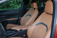 В целом, и у обычного Lexus UX 200 динамика для города неплохая – 9,2 с до 100 км/ч – неплохой показатель, но от автомобиля со столь яркой внешностью ожидаешь большего. Рулевое управление информативное, благодаря низкому центру тяжести в поворотах машина почти не кренится. Подвеска в целом настроена неплохо, но не любит стыки на путепроводах и трамвайных путях. Возможно, свою лепту здесь вносят жесткие низкопрофильные 18-дюймовые шины. В более доступных комплектациях на кроссовер ставят 17-дюймовые колеса. Шумоизоляция на среднем уровне по меркам автомобилей премиального сегмента.
