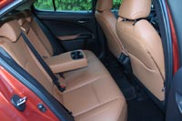 В интерьере удачно сочетаются разнофактурные материалы. В очередной раз Lexus порадовал удачными цветовыми комбинациями. У тестового автомобиля светло-коричневый салон хорошо сочетается с темно оранжевым цветом кузова. А всего для Lexus UX доступны 13 вариантов окраски кузова и 12 цветовых решений салона – есть из чего выбрать! Тестовый автомобиль в максимальной комплектации #discover оснащен креслами с электроприводом, обивка из перфорированной кожи. У них удачный профиль, только подушки немного коротковаты, и вентиляция не помешала бы.