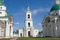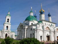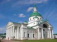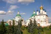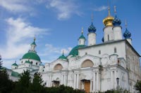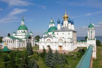 При въезде в город со стороны Москвы нельзя не заметить расположенный на западной окраине города Спасо-Яковлевский монастырь, красивейший архитектурный ансамбль которого расположен прямо на берегу древнего озера Неро. Панорама белокаменного монастыря с живописным сочетанием различных по стилю архитектурных форм производит впечатление сказочного чудо-города, органично вписанного в приозёрный ландшафт.