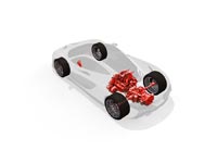 Идея автомобиля-трансформера была реализована, в первую очередь, при помощи двух инновационных систем – активной аэродинамики, а также адаптивной и регулируемой гидропневматической подвески. Кроме того, важную роль сыграли параллельная гибридная бензоэлектрическая силовая установка плюс несущий монокок и панели кузова, сделанные из материалов на основе углеродного волокна.