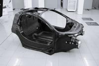 Невероятно интересна конструкция кузова нового автомобиля из Уокинга. Кузовных панелей всего пять: фронтальная секция, заднее оперение, крышка багажника, двери. Все они изготовлены из углеродного волокна – так же, как несущая пространственная структура (монокок или монокаркас), которая получила название MonoCage. MonoCage отличается от монокока MonoCell суперкара MP4-12C тем, что включает в себя силовые элементы крыши, шноркель для забора воздуха в двигатель и корпус, в котором размещаются аккумуляторная батарея и силовая электроника. Толщина лобового стекла McLaren P1 составляет 3,2 мм (на 1 мм меньше, чем у MP4-12C, что экономит 3,5 кг массы). Закалённое стекло, формирующее «купол истребителя» над головой водителя, и того тоньше – 2,4 мм.