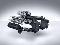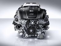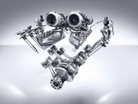 | В двигателе M 178 турбонаддув выполнен по схеме “Hot inside V”: два турбокомпрессора расположены в V-образном развале блока цилиндров |