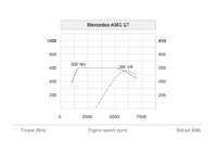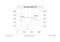 В первом случае упомянутый мотор развивает мощность 340 кВт (462 л.с.) при 6000 об/мин и крутящий момент 600 Нм в диапазоне от 1600 до 5000 об/мин. Во втором – 375 кВт (510 л.с.) при 6250 об/мин и 650 Нм в интервале от 1750 до 4750 об/мин (за счёт увеличения давления наддува). А, кроме того, для модификации AMG GT S предлагается опциональный пакет AMG DYNAMIC PLUS. Этот пакет, включающий в себя помимо прочего индивидуально регулируемые динамические опоры двигателя и коробки передач, позволяет ещё немного улучшить характеристики силового агрегата. Номинальная мощность двигателя становится доступной в диапазоне от 6000 до 6500 об/мин, а крутящий момент в интервале от 1750 до 5000 об/мин.