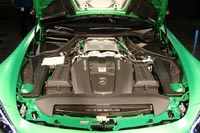 Восьмицилиндровый V-образный мотор M 178 объёмом 3.982 куб. см с двумя турбо-нагнетателями, непосредственным впрыском топлива и сухим картером, который на модели Mercedes-AMG GT S развивает мощность 375 кВт (510 л.с.) и крутящий момент 650 Нм, был изрядно форсирован. Двигатель получил новые турбины с увеличенным (с 1.2 до 1.35 бара) давлением наддува и двухмассовый маховик, который на 0.7 кг легче стандартного. Помимо этого инженеры изменили выпускные каналы, оптимизировали процессы сжатия и сгорания, а также перепрошили управляющую электронику. В результате мощность мотора выросла до 430 кВт (585 л.с.), при 6.250 об/мин, а крутящий момент – до 700 Нм, в диапазоне от 1.900 до 5.500 об/мин. Вдобавок, как утверждает производитель, не смотря на наличие наддува, данная версия двигателя имеет линейную характеристику мощности.