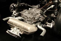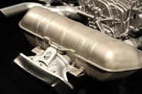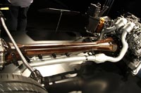 | Выпускная система спорткара изготовлена из титана и нержавеющей стали |