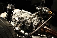 В подвеске нового спорткара (она здесь на двойных поперечных рычагах) тоже есть решения, которые направлены на снижение веса: треугольные рычаги и поворотные кулаки сделаны из кованого алюминия. А все остальные изменения предназначены для получения требуемых характеристик подвески, в частности, для увеличения её жёсткости. Речь идёт о более толстом, полом, заднем стабилизаторе поперечной устойчивости плюс о шарнирных подшипниках в нижних рычагах задней подвески, заменивших привычные сайлентблоки.