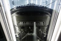 Наверное, наиболее интересным аэродинамическим элементом в передней части AMG GT R, является совершенно новый профиль, который в деактивированном состоянии прячется непосредственно за бампером, под днищем кузова. Данный элемент изготовлен из карбона и весит менее 2 кг. При достижении скорости 80 км/ч и при выбранном режиме «Гонка» в контроллере Dynamic Select (в силовом приводе AMG GT R предусмотрен такой алгоритм) передняя часть описываемого аэродинамического элемента опускается на 40 мм. Это приводит к возникновению «эффекта Вентури», за счёт которого передняя часть авто присасывается к земле – на скорости 250 км/ч подъёмная сила, действующая на переднюю ось, уменьшается примерно на 40 кг.