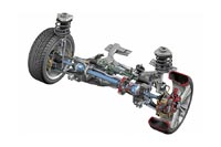 Вторая конструктивная изюминка – главная передача заднего моста со встроенным многодисковым сцеплением с электрогидравлическим управлением. Это сцепление как раз и ведает распределением крутящего момента между передней и задней осями. Давление в системе, необходимое для подключения задней оси, в течение миллисекунд обеспечивается роторным насосом. Насос включается автоматически, уже при небольшой разнице в частоте между передней и задней осями, однако регулировка давления в сцеплении возложена на клапан пропорционального регулирования, который управляется системой ESP.