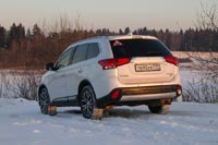 При этом Mitsubishi Outlander сертифицирован как внедорожник. У него очень хорошие геометрические показатели проходимости, дорожный просвет составляет 215 мм. У данного автомобиля одинаковая колея передних и задних колес, из-за этого на бездорожье сопротивление качению меньше. Версия Outlander GT по сравнению с базовой моделью обладает еще лучшей проходимостью, поскольку она оснащена автоматической коробкой передач с гидротрансформатором, а не вариатором, который может перегреться в тяжелых условиях. В общем, в зимних условиях эксплуатации автомобиль оставил самые благоприятные впечатления.