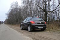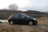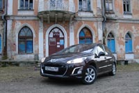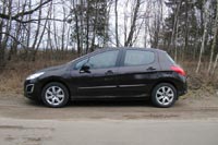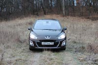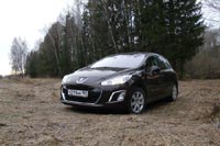 Тестовый автомобиль, покрашенный в новый цвет Terre d'Ombre (темно-коричневый металлик), смотрится очень эффектно, особенно на ярком солнце. В салоне триста восьмого встречают качественные отделочные материалы, приятный на глаз и мягкий на ощупь пластик передней панели. В дизайне интерьера тестовой машины ярко выражена спортивная нотка, трехспицевый руль отделан мягкой и очень приятной на ощупь кожей, местами гладкой, местами перфорированной, передние сиденья с развитой боковой поддержкой, шкалы приборов эффектного белого цвета, спидометр оцифрован до 250 км/ч. В центре щитка приборов монохромный экран бортового компьютера, информация о среднем расходе топлива, пробеге, запасе хода всегда перед глазами. Центральная консоль имеет модную отделку под черный лак. К недостаткам эргономики можно отнести отсутствие русифицированного меню в настройках бортового компьютера, но этот недостаток французы обещают скоро исправить.