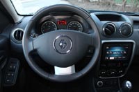 В салоне все просто, хотя местами и чересчур. Жесткий пластик, не самая лучшая подгонка панелей, периодически напоминающих о себе скрипами и сверчками. В нашей комплектации предусмотрена кожаная отделка, но для Duster это - явное излишество. Я не против кожи. Но она должна быть либо хорошей, либо - не быть вообще. А тут она искусственная и дешевая. Долго ли протянет?