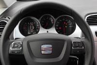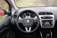 Главное достоинство компаквэна – просторный салон - в полной мере ощутят и покупатели SEAT Altea Fretrack. Места над головой достаточно даже при вертикальной посадке. Двое задних пассажиров тоже вряд ли пожалуются на тесноту, а вот втроем будет уже не столь комфортно, и придется закрыть лыжный клапан в спинке заднего сиденья, на обратной стороне которого расположены такие удобные подстаканники. Салон тестового автомобиля был отделан качественной кожей, между передними сиденьями бокс-подлокотник оригинальной формы, жаль, что пластик, несмотря на симпатичный вид, жесткий на ощупь. То же самое замечание относится и к передней панели. Приборы расположены в трех колодцах, между которыми блестит крашеный серебристой краской пластик, спорное решение в плане дизайна, но к эргономике никаких претензий нет, четкая графика и приятная подсветка. Стрелки спидометра и тахометра по-спортивному смотрят вниз, а красная подсветка усиливает спортивный настрой.