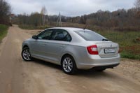 А режим Drive пригодится для неспешного передвижения по загородным трассам, при этом обеспечивается минимальный расход топлива, при степенной езде вполне можно уложиться в 5 л на 100 км. Но с таким мотором не возникает особого желания экономить топливо. Ведь максимальная скорость у автомобиля 208 км/ч! И, самое важное, он надежно управляется на больших скоростях. Электромеханический усилитель руля настроен идеально. Кренов в поворотах практически нет. Но расплачиваться за отменную управляемость приходится повышенной жесткостью подвески, хотя свою лепту вносят и опциональные низкопрофильные шины. При этом пробить до отбойников подвеску не просто, порой кажется, что пробой вот-вот произойдет, а его нет, хотя на плохой дороге ощутимо потряхивает и пассажиры жалуются на дискомфорт. К сожалению, именно качество наших дорог является ограничителем скорости для Skoda Rapid. Комфортная – не более 130 км/ч. Уверен, что на европейских дорогах данный автомобиль показал бы себя во всей красе. Ведь мелкие неровности подвеска отрабатывает идеально. Вообще к недостаткам Rapid следует отнести – недостаточную адаптацию для наших условий эксплуатации. У него маленький дорожный просвет, даже в качестве опции не предлагается обогрев лобового стекла. Если бы он был, глядишь и скребок для очистки льда стал бы не нужен.