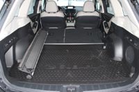 Багажный отсек вместительный и удобный, погрузочная высота небольшая. При складывании спинок задних кресел, что осуществляется дистанционно, образуется большая ровная площадка. Для крепления сумок предусмотрены крючки. Отделка аккуратная и практичная.