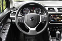 У автомобиля удобные, в меру жесткие передние кресла, с длинными и широкими подушками и большим диапазоном регулировок. По высоте регулируется не только водительское, но и пассажирское кресло. Между передними сиденьями есть удобный бокс-подлокотник, в который встроен USB-разъем. Посадка высокая, но при этом места над головой достаточно, салон просторный. Рулевая колонка регулируется по углу наклона и по вылету в широком диапазоне. У Suzuki SX4 отличная обзорность, зеркала большие, подголовники на задних креслах опускаются вниз, есть парктроники спереди и сзади и камера заднего вида. Аэродинамика кузова такова, что боковые стекла в дождь остаются чистыми.