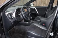 Интерьер у RAV4 Exclusive тоже особый. Черный потолок, кресла с комбинированной отделкой кожей, замшей и тканью