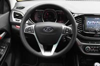 Если сидя за рулем закрыть глаза, можно подумать, что находишься в салоне иномарки. Никогда еще у LADA не было столь удобных сидений. Форма и плотность набивки кресел оптимальные, большой диапазон регулировок, есть даже регулировка поясничного упора. Удобные дверные ручки сделаны под естественный хват. Руль оптимального сечения, рулевая колонка регулируется по углу наклона и по вылету в широком диапазоне. Блок климат-контроля оснащен двумя удобными вращающимися регуляторами. Предусмотрен обогрев лобового стекла. Между передними креслами есть небольшой бокс-подлокотник. Даже крышка перчаточного ящика оснащена микролифтом.