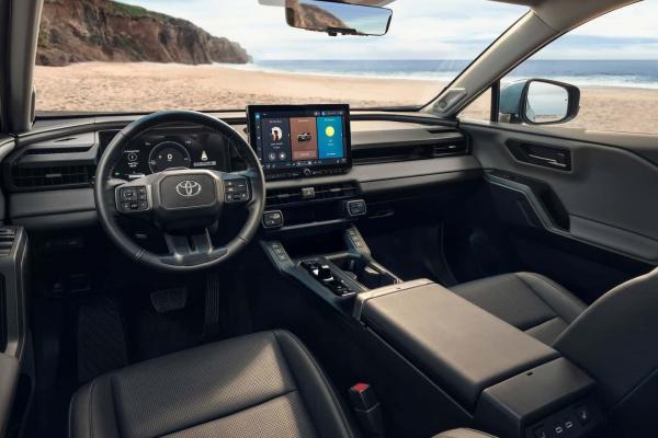 Интерьер сдался новой моде на виртуальные опции. Аналоговых кнопок стало заметно меньше. В частности, RAV4 отказался от отдельного блока климата, он перенесен внутрь мультимедиа. Экран ГУ в стандарте вырос до 10,5 дюйма, а в топе его диагональ составит 12,9. Приборная панель - только виртуальная. Ранее аналоговые шкалы "в базе" еще были.
