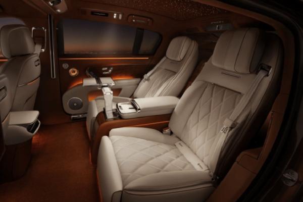 Роскошно отделанный салон "заточен" под комфорт задних пассажиров. На галерке стоят кресла Zero Gravity с массажем, вентиляцией, оттоманками и электрическими регулировками по двум десяткам параметров. Здесь же есть своя мультимедиа, мини-бар и холодильник. Над головами седоков устроена подсветка в виде звездного неба.