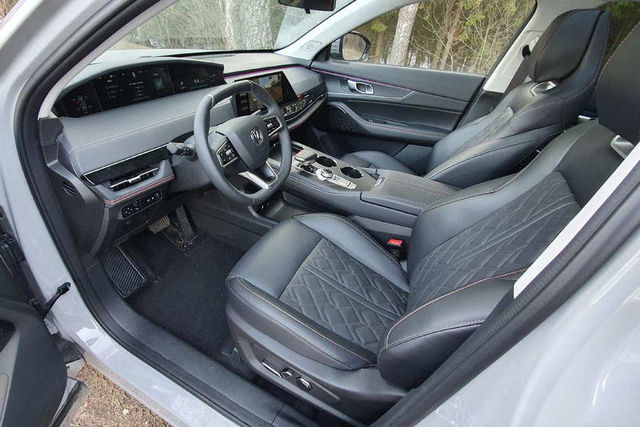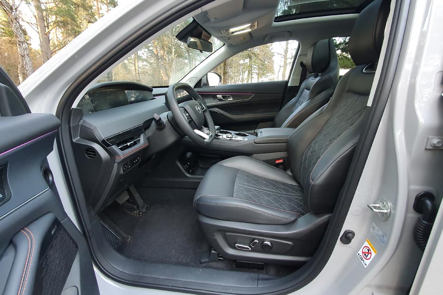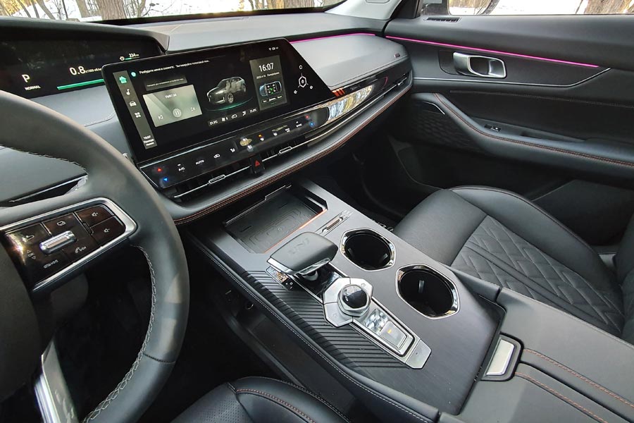 Оснащение не хуже, чем у европейских премиальных брендов: огромная панорамная крыша с люком, система кругового обзора, адаптивный круиз-контроль, встроенный видеорегистратор. Однако обзорность неважная из-за узких боковых стекол.
