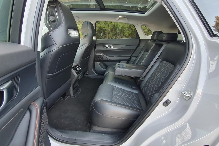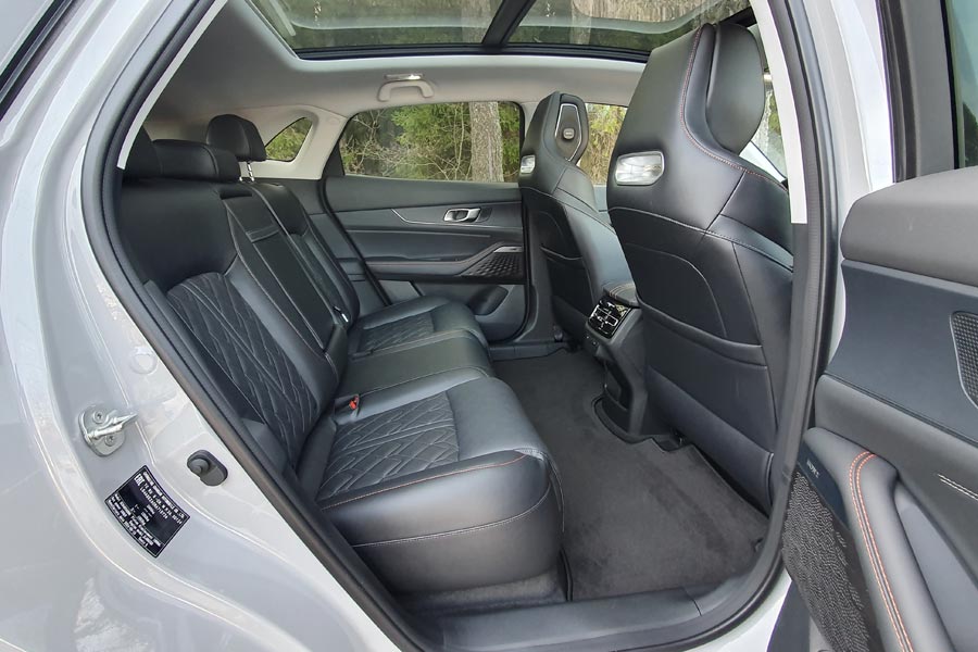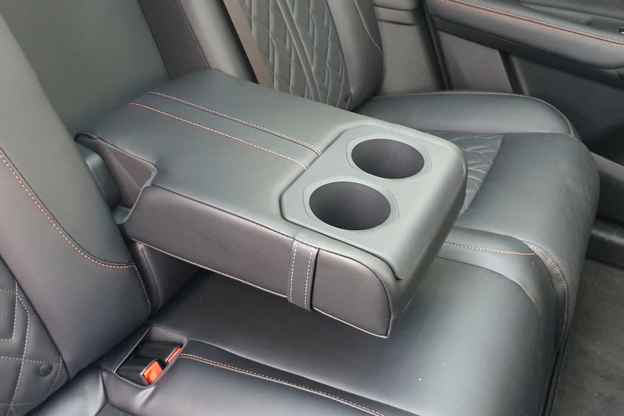На заднем ряду места как в автомобиле представительского класса. Расстояние от переднего края подушки заднего сиденья до спинки переднего кресла – 422 мм! Несмотря на полный привод, центрального тоннеля нет – пол ровный. Спинки регулируются по углу наклона, кресла оснащены обогревами. Однако есть один нюанс – кроссовер получился очень тяжелым, его снаряженный вес – 2005 кг, полный – 2305 кг. Так что формально он может взять на борт только четырех человек без багажа, да и то не особо упитанных.