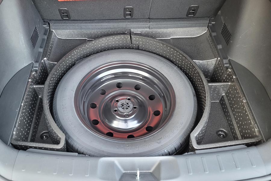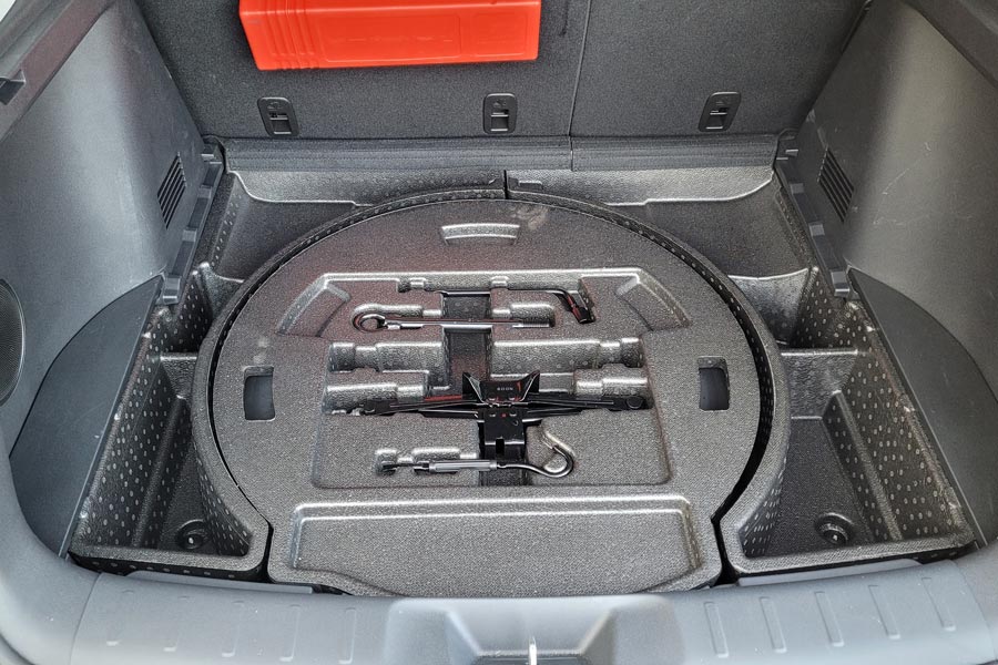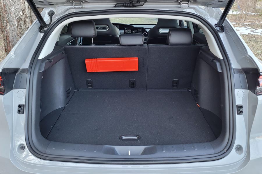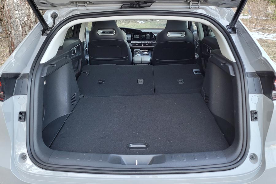 Багажный отсек для автомобиля со столь внушительным габаритами (длина 4865 мм, ширина 1948 мм, колесная база 2890 мм) совсем скромный, его объем составляет 351 л, под полом размещается докатка с инструментом и органайзер для мелких предметов. Дверной проем широкий, спинки задних кресел складываются, образуя ровную поверхность. Дверь багажного отсека с электроприводом. Но плохо, что нет продольной регулировки у задних кресел, чтобы при необходимости можно было увеличить объем багажника.