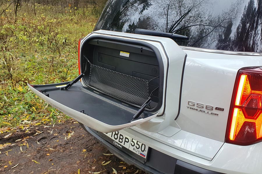 GAC GS8 Traveller внешне существенно отличается от базовой версии. У него оригинальные решетка радиатора с обилием хрома, передний бампер и противотуманные фонари. На автомобиле установлены эксклюзивные 20-дюймовые колесные диски. Как и положено настоящему «путешественнику», за «плечами» у него закреплен «рюкзак» - небольшой бокс. Выглядит стильно, однако практичность его сомнительна. Объем бокса небольшой, у него есть откидная крышка и ее можно использовать как походный столик, но беда в том, что он выдерживает только 3 кг, кто-нибудь случайно облокотится – и нет столика. Лучше уж организовать пикник по старой привычке – на капоте, так надежнее. К тому же из-за этого бокса габаритная длина автомобиля увеличилась на 130 мм, и он ограничивает обзор через салонное зеркало.