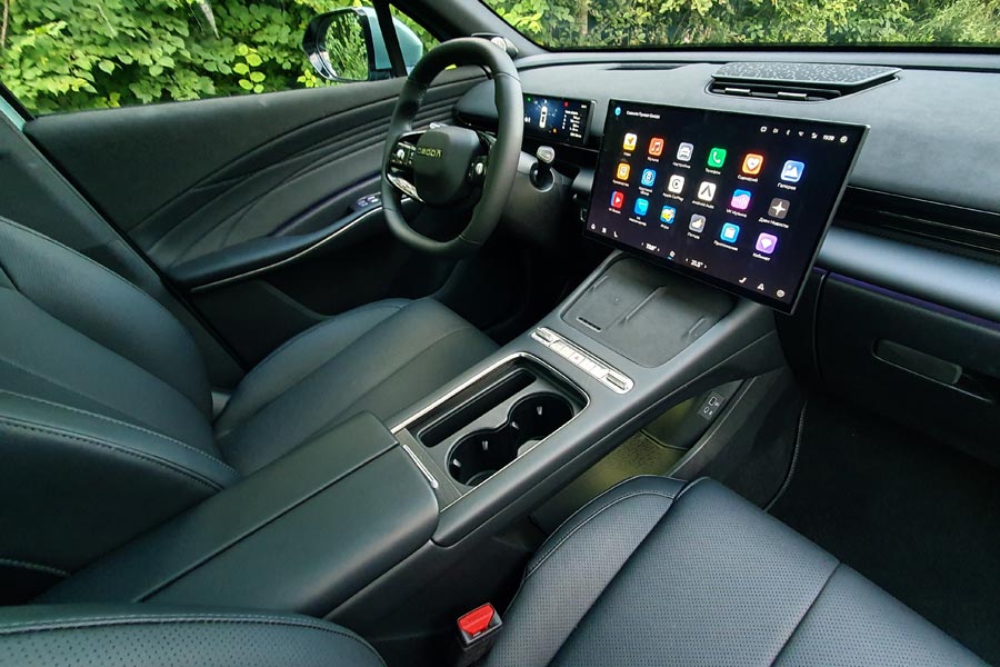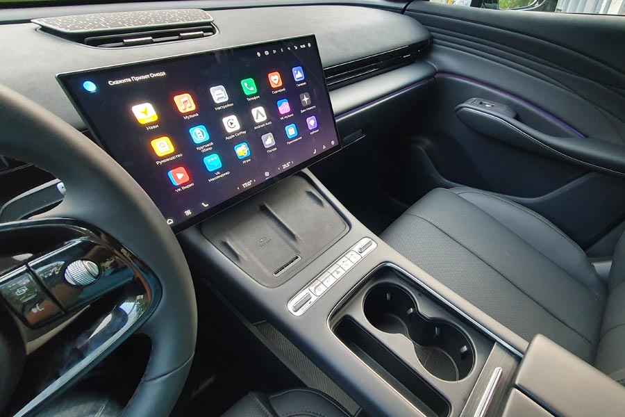 Встречают по одежке. Дизайн яркий и необычный. Прежде всего обращаешь внимание на то, что решетки радиатора фактически нет, она как на электромобилях – безрамочная. Оригинальная светодиодная оптика с анимированной подсветкой в переднем бампере и задними фонарями с необычным узором. Очень чистые и лаконичные аэродинамические формы, зазоры на кузовных элементах практически не заметны. Дверные ручки сделаны заподлицо с кузовом, и они обычные, а не выдвижные.