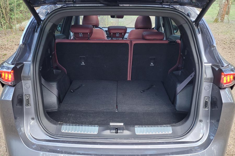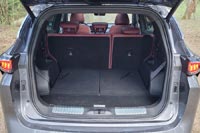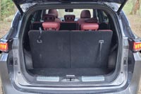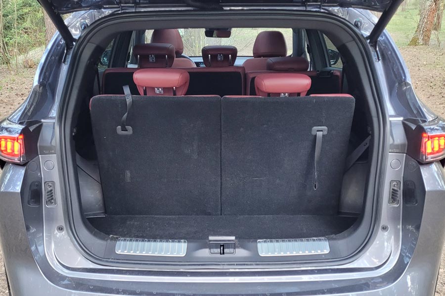 Со сложенными креслами третьего ряда багажный отсек вместительный. Он правильной прямоугольной формы с большим проемом и низкой погрузочной высотой. Дверь багажника с электроприводом. В подполье предусмотрена ниша для мелких предметов и шторки багажника. Она снимается, когда раскладывают третий ряд кресел. При сложенных креслах второго и третьего ряда образуется ровная поверхность.