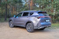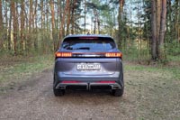 Подвеска (спереди McPherson, сзади многорычажная) оптимально настроена. Мелких неровностей автомобиль почти не замечает, уровень комфорта высокий. Запас по энергоемкости большой. И это на жестких низкопрофильных шинах размерности 235/55 R19, которые устанавливают на топовую версию. Остальные модификации комплектуются шинами размерности 235/60 R18, у них уровень комфорта, скорее всего, еще выше. Крены в поворотах небольшие. Рулевое управление информативное. Тормоза эффективные.