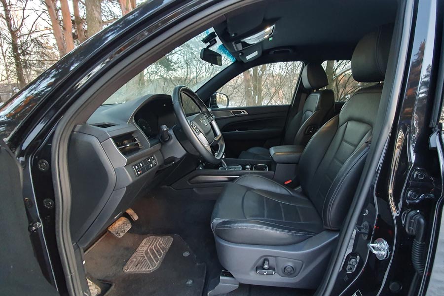 Из двух комплектаций KGM нам досталась топовая Icon. Отделка - натуральная перфорированная кожа. Мягкий пластик везде, куда обычно дотягиваются руки. Все кресла греются. У передних есть вентиляция и электрические регулировки. Водитель вправе подстраивать свое сиденье по дюжине параметров. Красота!