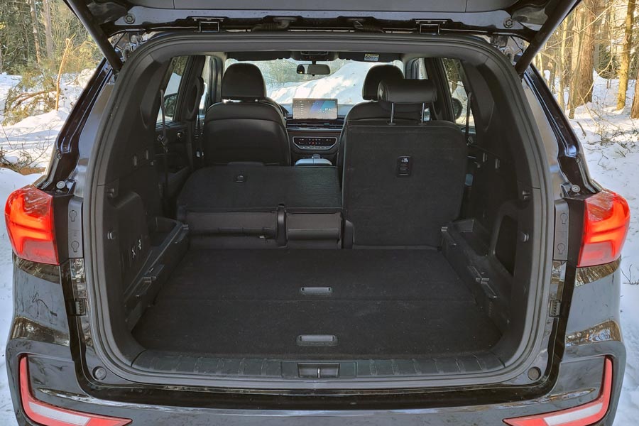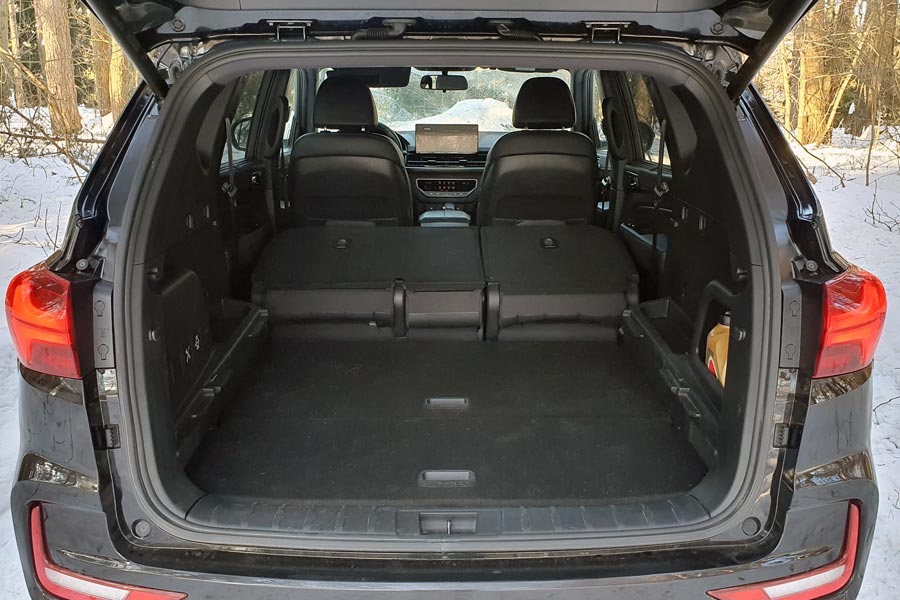 И галерка не подкачала. Места там - море, есть свои воздуховоды (без отдельной зоны климата), розетка на 12 вольт, USB-порт и выдвижные шторки на стеклах. Спинка дивана регулируется по наклону и фиксируется в разных положениях. Ну а если нужен простор для багажа, складываются не только спинки, но и сами задние кресла "кувыркаются" вперед.