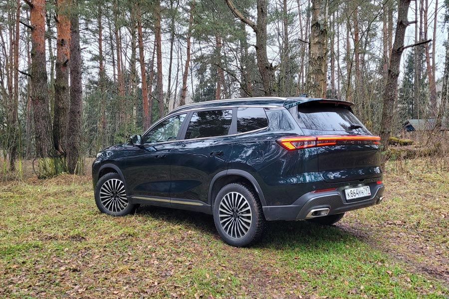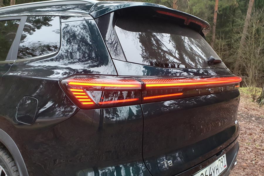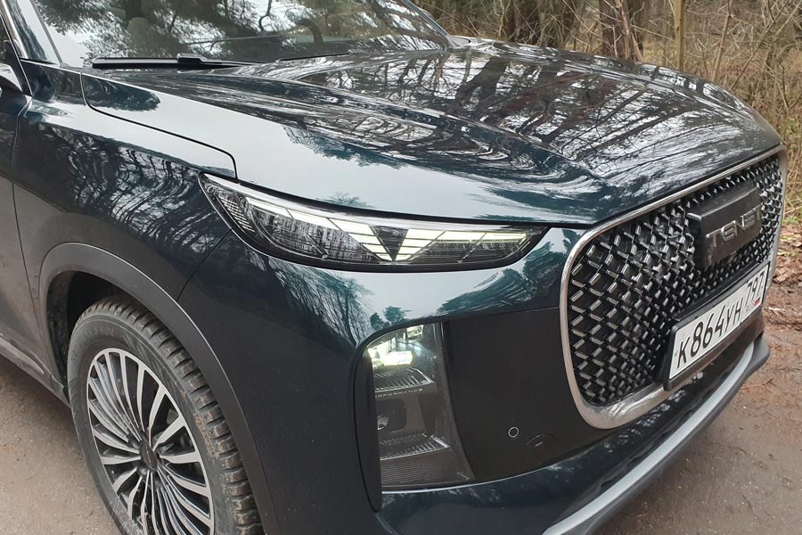 Встречают по одежке. Дизайн выполнен в стиле флагманской модели Chery Tiggo 9. Тестовый автомобиль в глубоком цвете темно-зеленый металлик выглядит солидно и дорого. Оттенок у краски интересный, в сумерках автомобиль почти черный, а на солнце цветовая палитра раскрывается, подчеркивая элегантный силуэт машины. Всего для Tenet T8 предлагается 7 вариантов окраски, все они интересные и гармонично сочетаются с цветовым оформлением интерьеров. Сборка и окраска качественные, зазоры между кузовными элементами ровные и небольшие.