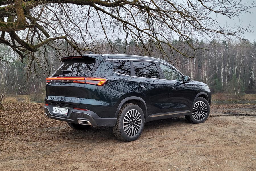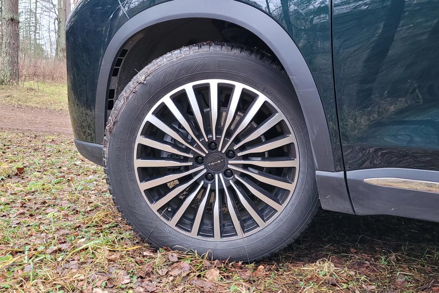 Едет Tenet T8 породисто. У него эффективная шумоизоляция. Даже на низкопрофильных шинах размерности 235/50 R19 подвеска (спереди McPherson, сзади многорычажная) хорошо справляется с неровностями. Управление достаточно информативное, тормоза эффективные.